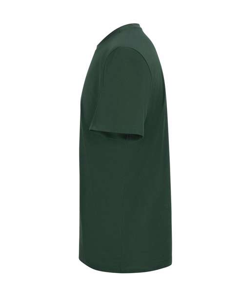 Relaxed fit T. Short sleeves. Side seams. PurePrint BC Cotton fabric. Taped back neck. Twin needle stitch details. Ribbed crew neck. Size label only for easy rebranding.